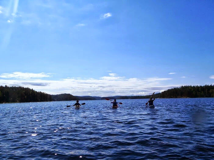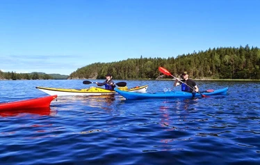 Melomme yksikkö- ja kaksikkokajakeilla. Aikaisempi melontakokemus ei ole välttämätön – perusasiat opastetaan, ja etenemme rauhallisesti – mutta kokemuksesta ei tietenkään ole haittaa.
