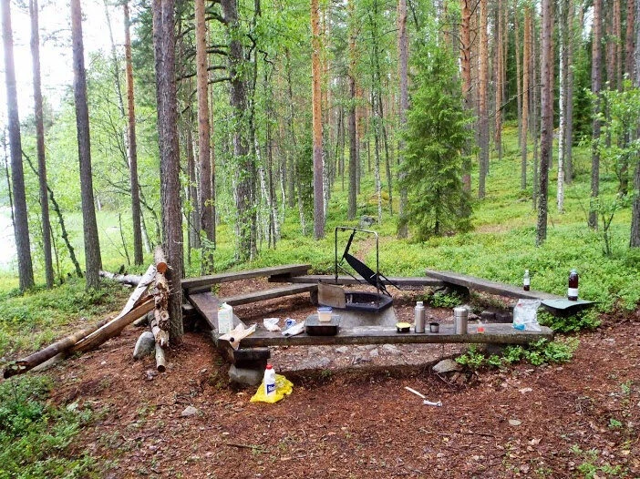 Majoitumme matkan aikana omissa teltoissamme yöpymiseen tarkoitetuilla telttapaikoilla, joissa on kuivakäymälä. Ryhmä suunnittelee ja valmistaa ateriat yhdessä retkikeittimillä tai, jos sää sallii, nuotiopaikoilla. Metsäpalovaroituksen aikana avotulen teko ei ole mahdollista, joten tällöin on huolehdittava, että kaikki ruoka voidaan valmistaa retkikeittimillä.