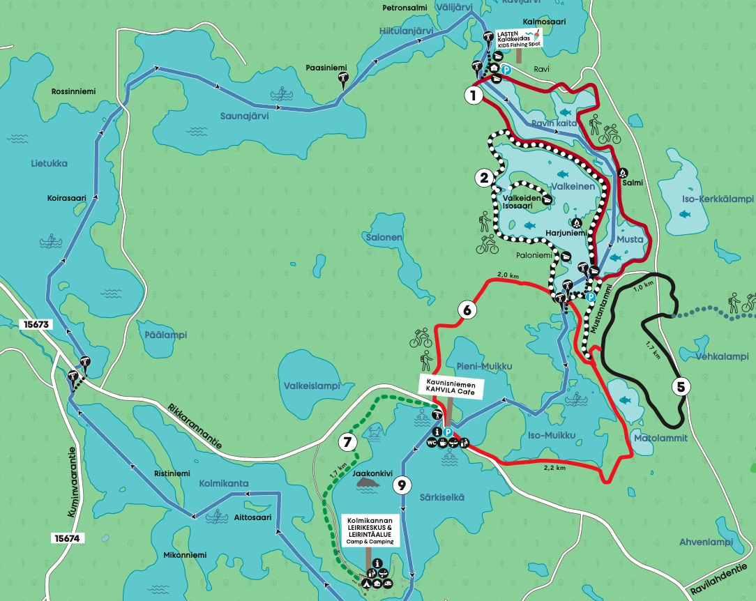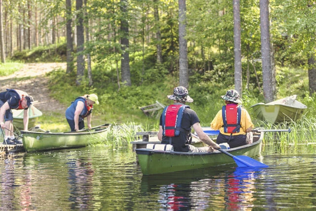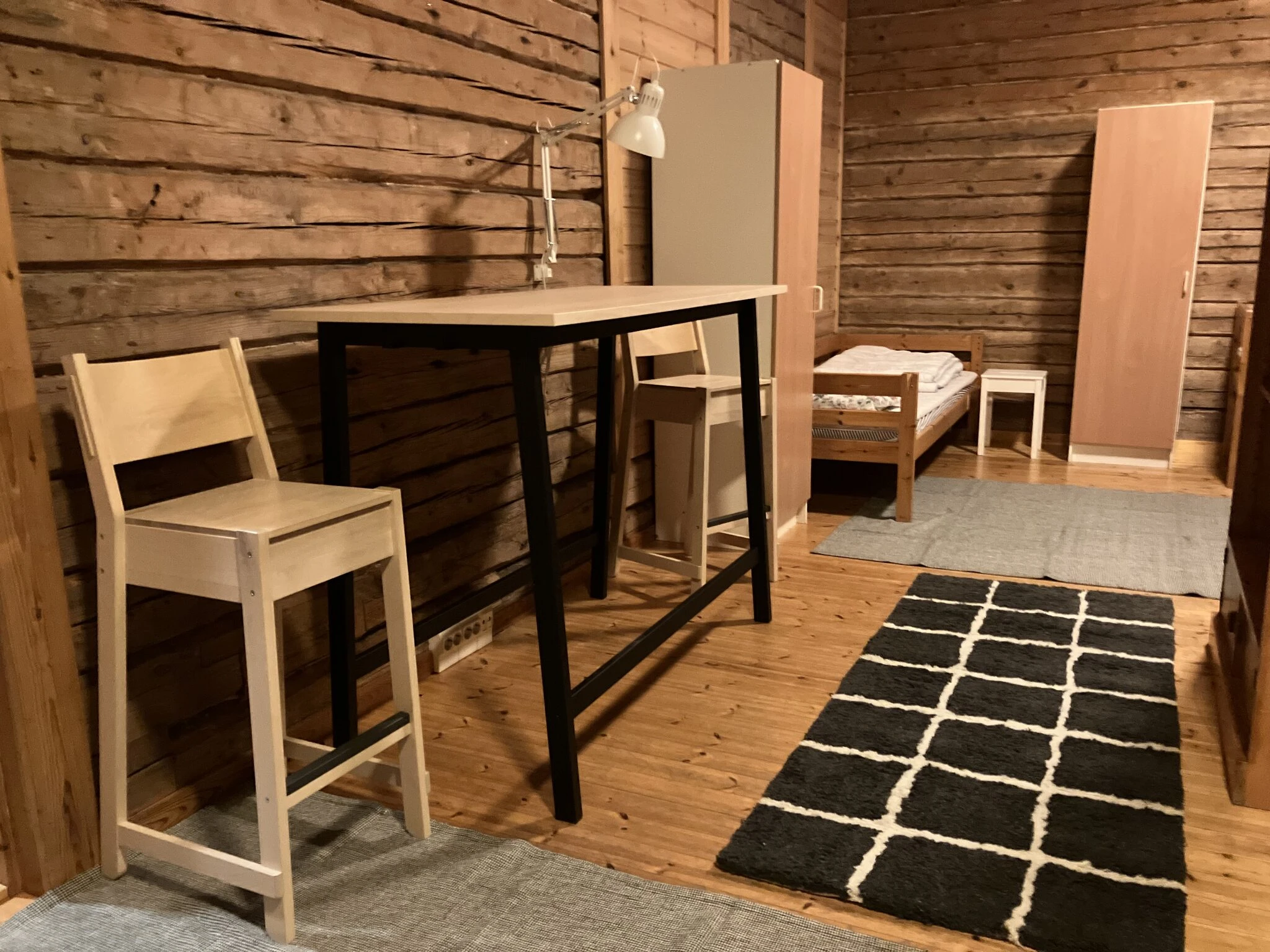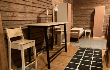 Kolmikannan leirikeskuksen majoitusrakennuksen huone, jossa on 8 petipaikkaa kerrossängyissä. Jaettu wc ja suihku. Lisäksi käytössä on yhteisissä tiloissa oleva keittiötila, jossa voi valmistaa omia ruokia. Keittiössä on jääkaappi, mikroaaltouuni, liesi ja uuni. Sängyt ovat kerrossänkyjä ja niissä on tyynyt ja peitot. Ei liinavaatteita. Liinavaatteet ja pyyhkeet voi vuokrata tilaamalle ne vähintään 1 vrk etukäteen: Anne@wildkarelia.fi.