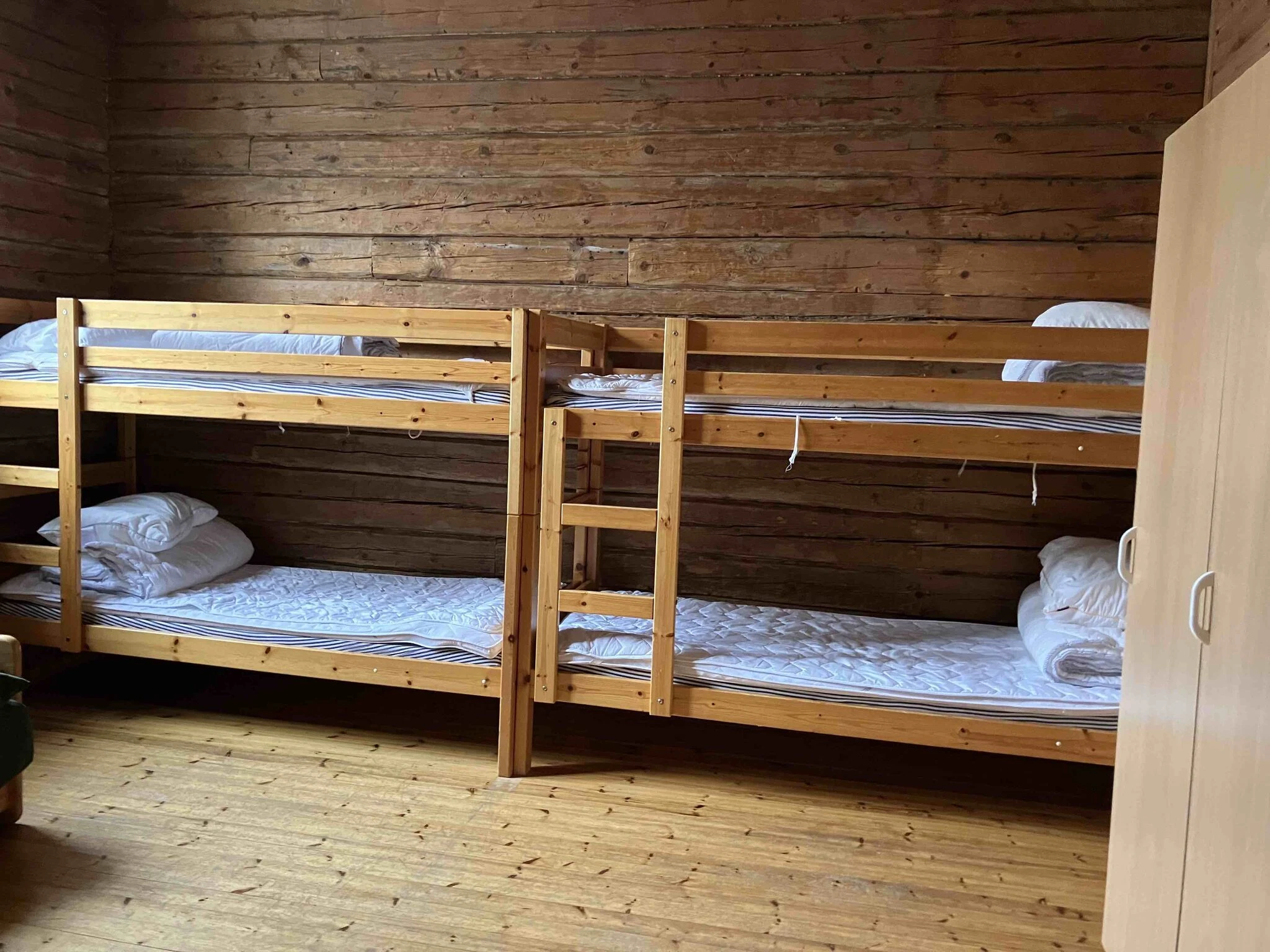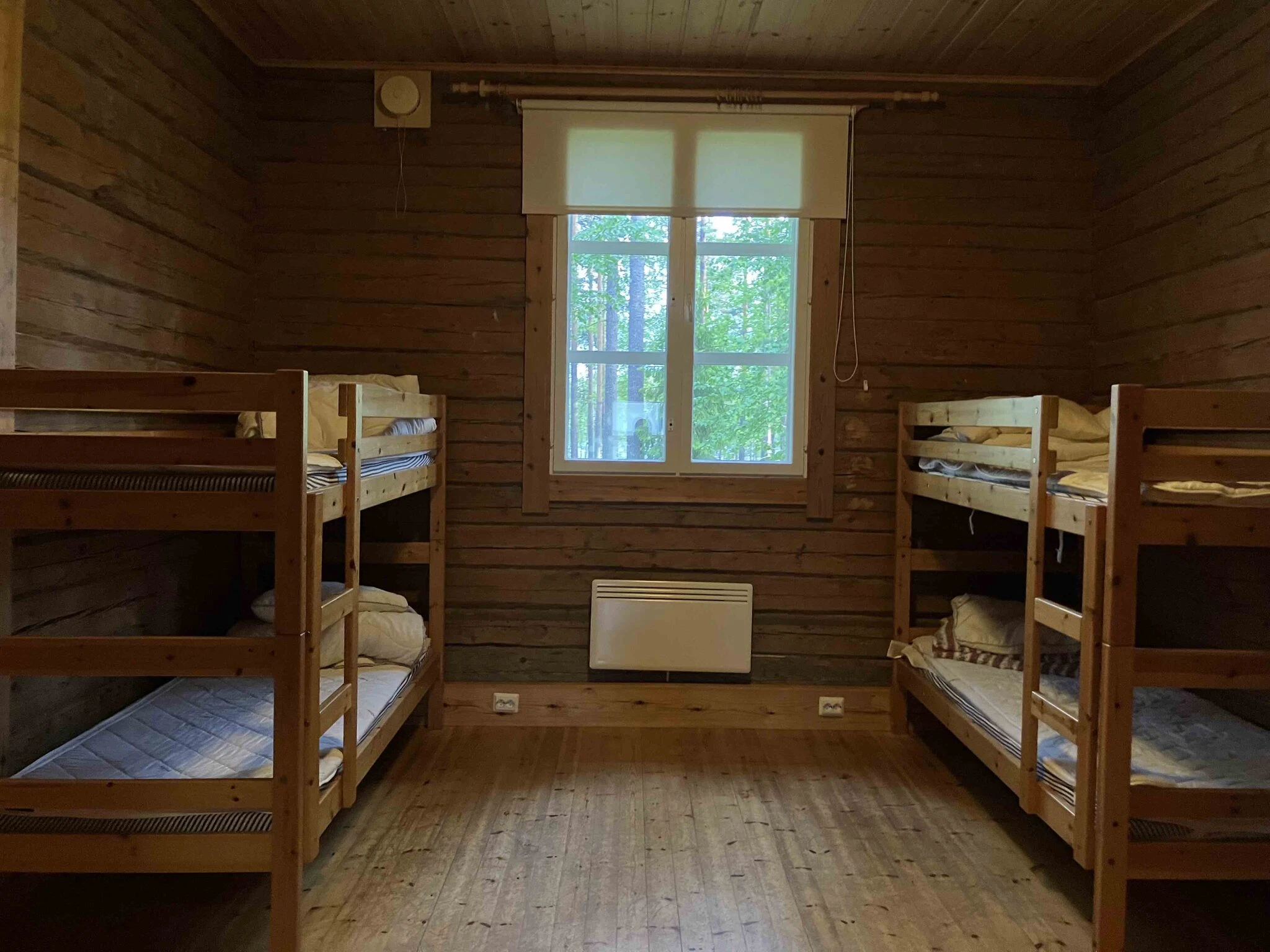 Huoneissa on tyynyt, peitot ja patjat, ei liinavaatteita. Liinavaatteet voi vuokrata ennakkotilauksesta: Anne@wildkarelia.fi