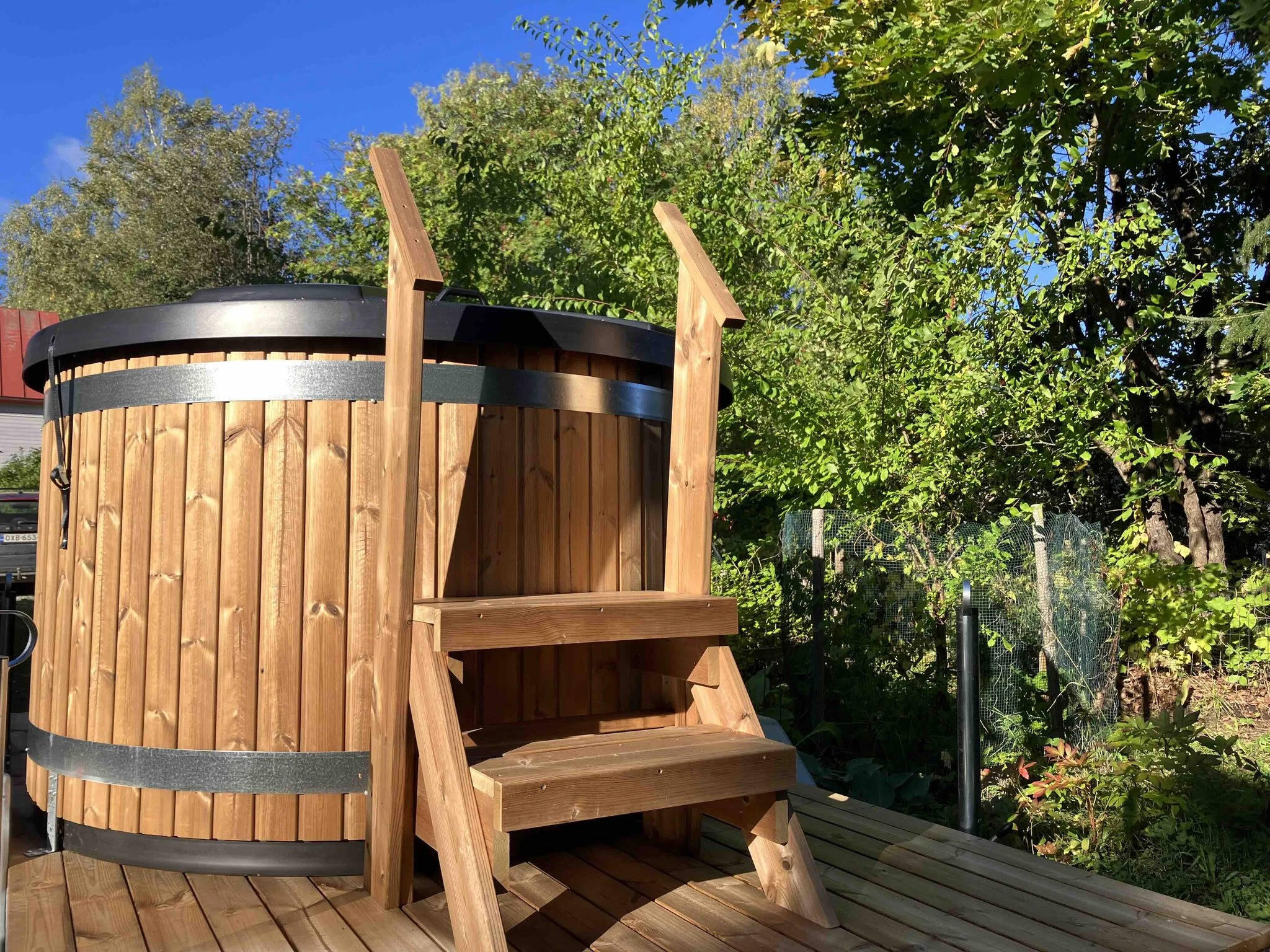 Toimitamme kärryn ja asennamme sen lämmitysvalmiuteen kohteessa. Tuote on tarkoitettu ainoastaan ulkokäyttöön ja sijoitettava tasaiselle alustalle, joka kestää täyden tynnyrin painon. On tärkeää, että perustus on suora ja tasainen myös ulkopuolisen vedenlämmittimen alla. Etäisyys palaviin materiaaleihin 3 metriä piipun suusta. Täytettyä allasta tai vedenlämmitintä ei saa päästää jäätymään. Tulen samuttua, tyhjennä lämmitin poistopropusta tyhjentäen. Kylpytynnyryiä/allasta ja vedenlämmitintä ei saa tyhjentää ennen kuin tuli on kokonaan sammunut ja hiillos hiipunut. Älä lämmitä vettä liian kuumaksi. Suositeltu lämtöpila on 37 stetta.